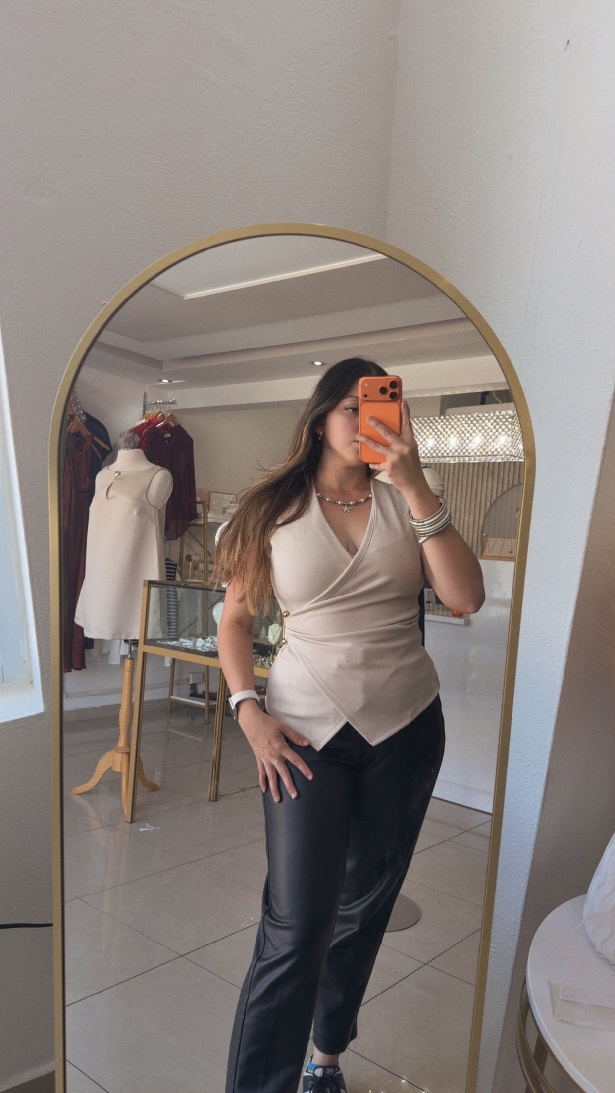 Corte en V, con detalle en la cintura para que se marque más